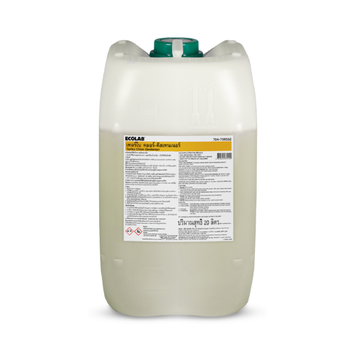 Turbo Chlor - Destainer is a chlorine-based bleach used in laundries to remove yellow, gray stains, and heavy dirt. It should not be used on wool, silk, polyamide, or colored fabrics.