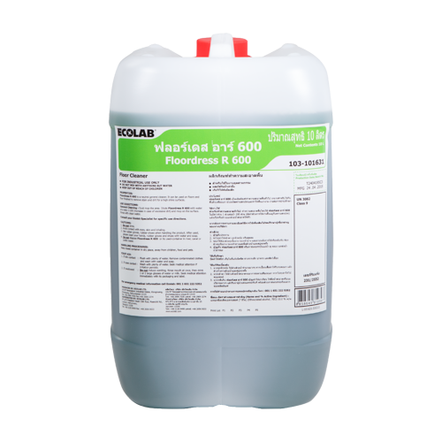 Chất lau sàn trung tính Ecolab Floordress R600 là nước lau sàn đa năng trung tính, được sử dụng trên tất cả các loại sàn và sàn phủ keo để loại bỏ vết ố và bụi bẩn làm cho bề mặt sáng bóng.
