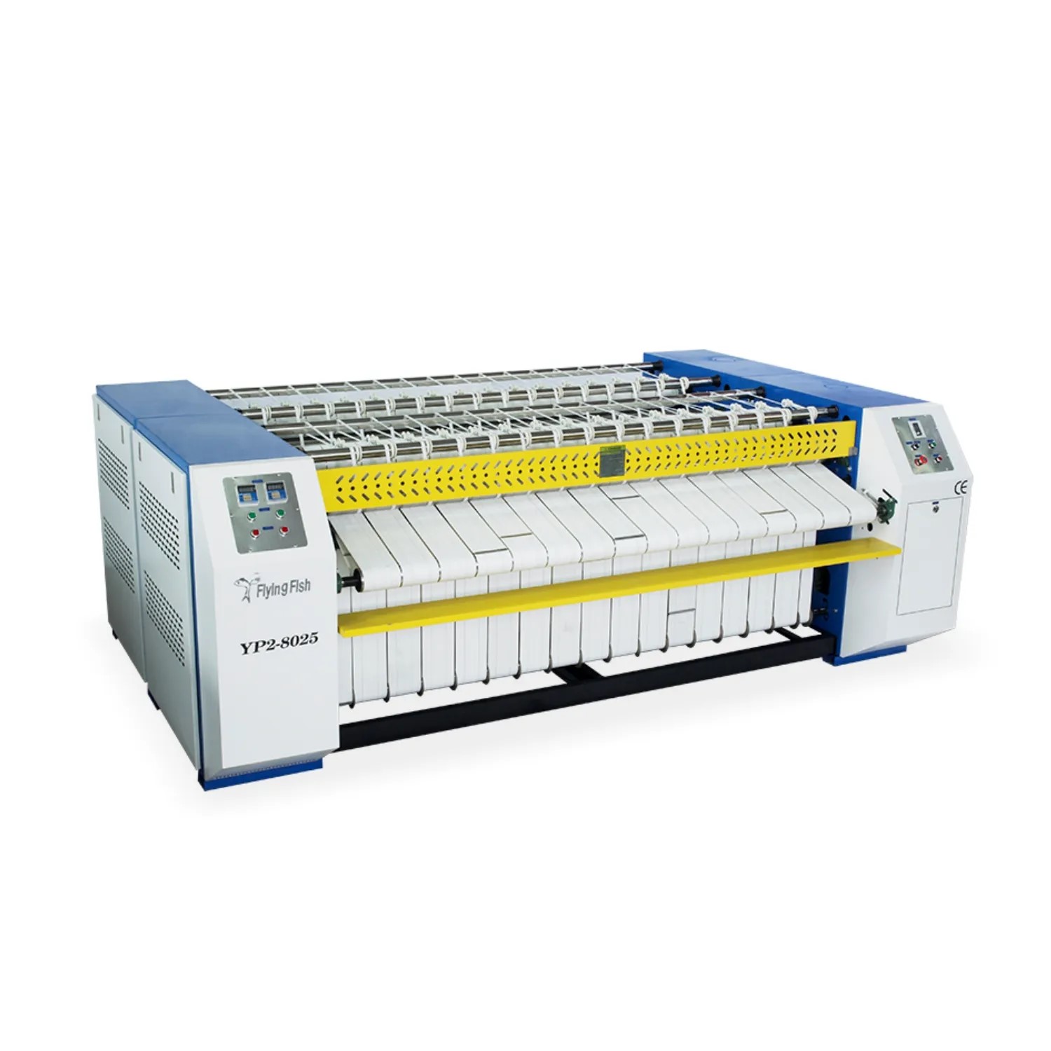 Máy ủi hàng vải điều khiển đơn giản với nút Bắt đầu/Dừng. Hệ thống điện ba pha, bảo vệ quá tải, bảo vệ điện áp và ngắn mạch, công tắc dừng khẩn cấp.