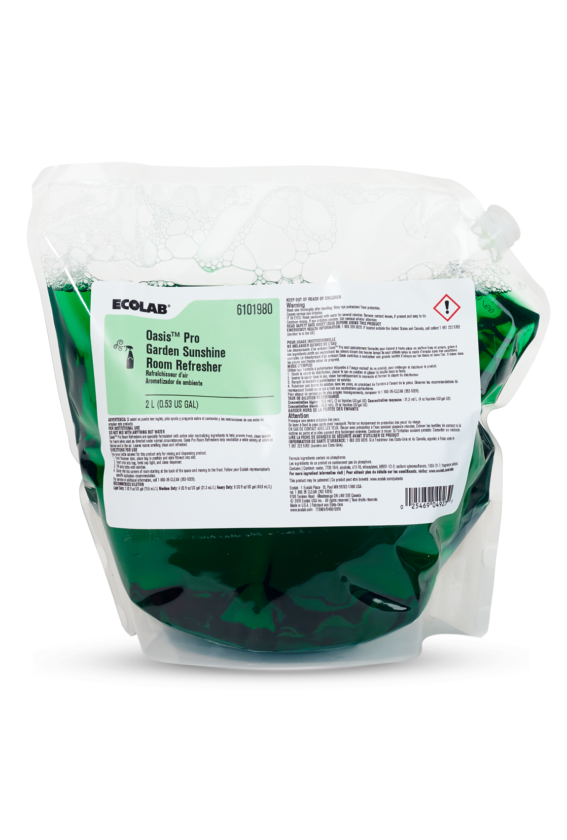 Pha nước khử mùi cô đặc thông qua máy pha Oasis Pro Dispenser vào bình xịt tay, bình xịt bơm hơi hoặc máy phun sương Ecolab Fogmaster Jr.